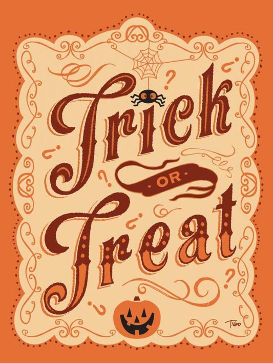 Trick or Treat Sign White Modern Wood Framed Art Print with Double Matting by Woo, Teresa