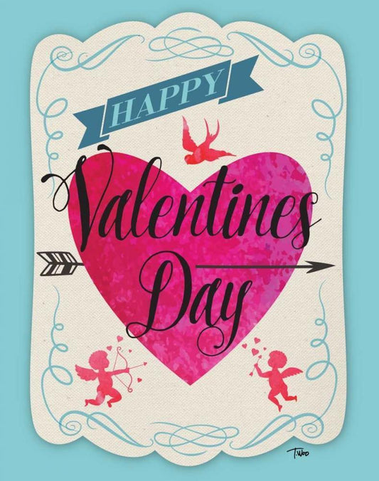 Cupid Valentine White Modern Wood Framed Art Print with Double Matting by Woo, Teresa
