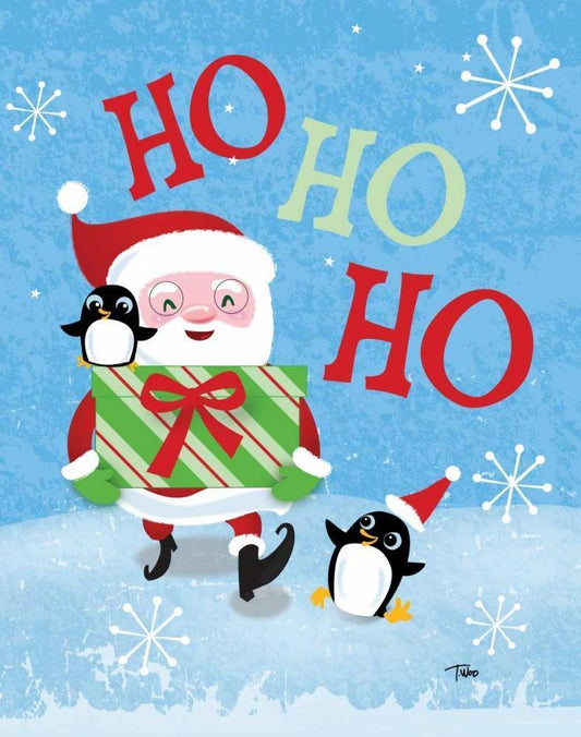 Santa Gift White Modern Wood Framed Art Print with Double Matting by Woo, Teresa