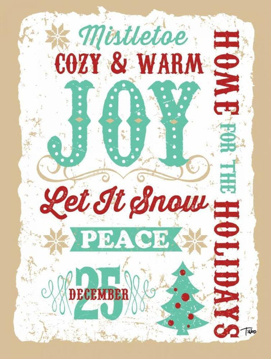 Holiday Words Tan White Modern Wood Framed Art Print with Double Matting by Woo, Teresa