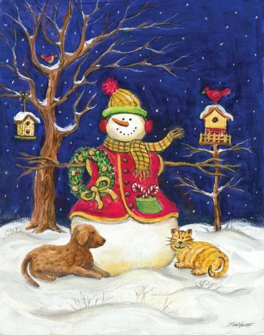 Snowman and Friends White Modern Wood Framed Art Print with Double Matting by Williams, Todd