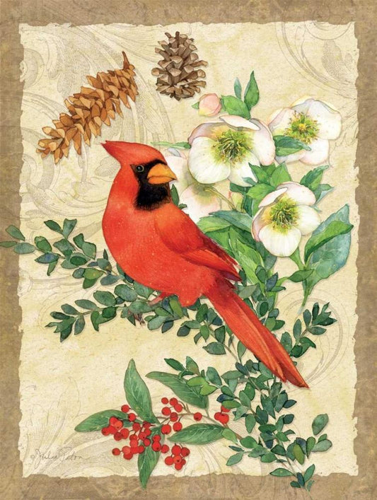 Holiday Cardinal White Modern Wood Framed Art Print with Double Matting by Paton, Julie