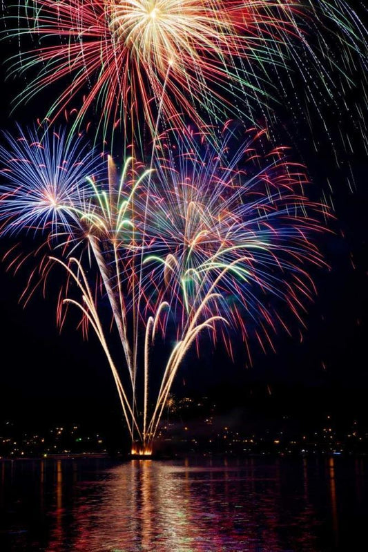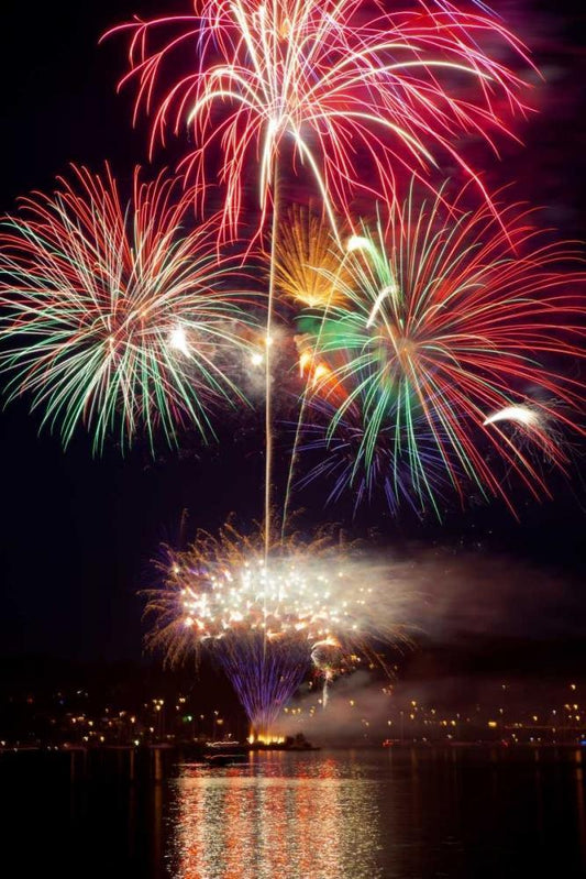 Poulsbo Fireworks I White Modern Wood Framed Art Print with Double Matting by Mahan, Kathy