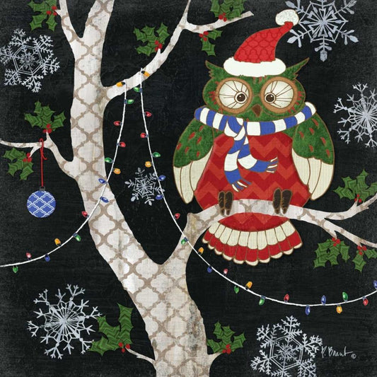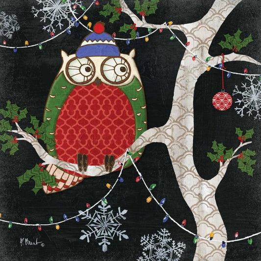 Winter Fantasy Owls III White Modern Wood Framed Art Print with Double Matting by Brent, Paul