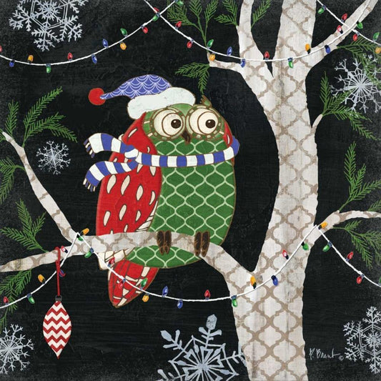 Winter Fantasy Owls I White Modern Wood Framed Art Print with Double Matting by Brent, Paul