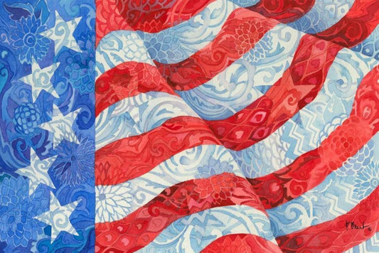 Spangled Stars and Stripes White Modern Wood Framed Art Print with Double Matting by Brent, Paul