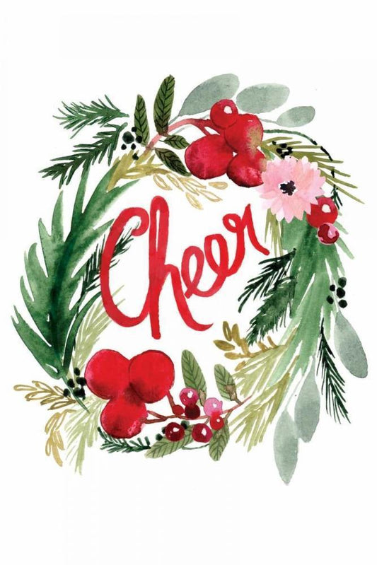 Cheer Wreath White Modern Wood Framed Art Print with Double Matting by Berrenson, Sara