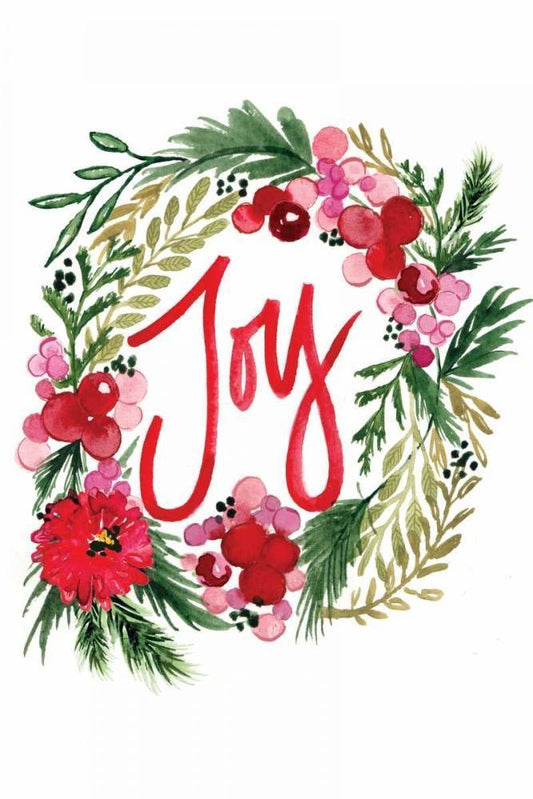 Joy Wreath White Modern Wood Framed Art Print with Double Matting by Berrenson, Sara