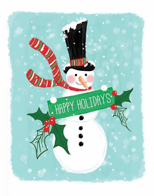 Holiday Snowman White Modern Wood Framed Art Print with Double Matting by Berrenson, Sara