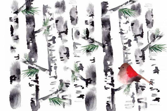 Bird in Birch White Modern Wood Framed Art Print with Double Matting by Berrenson, Sara