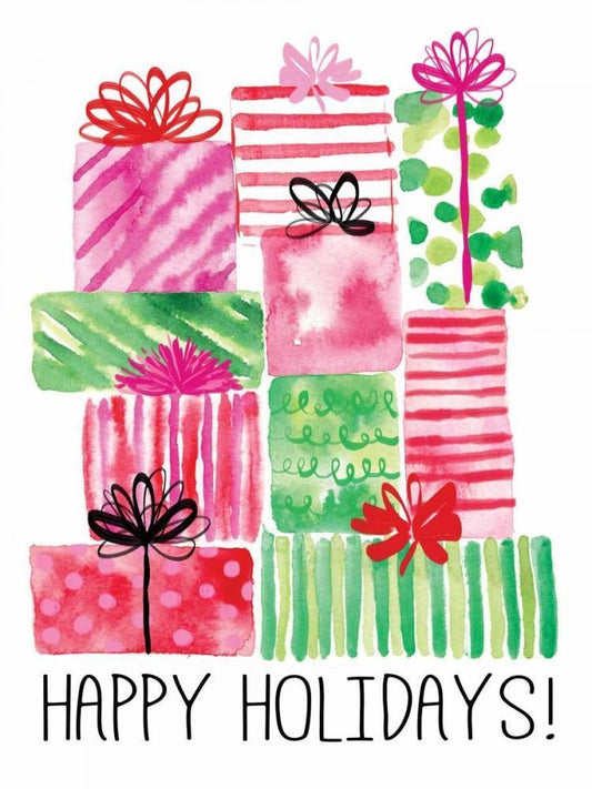 Watercolor Presents White Modern Wood Framed Art Print with Double Matting by Berrenson, Sara
