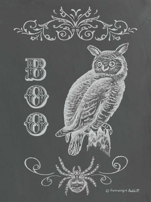 Halloween Owl White Modern Wood Framed Art Print with Double Matting by Babbitt, Gwendolyn