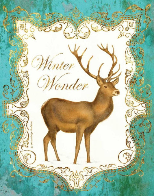 Deer in Snow White Modern Wood Framed Art Print with Double Matting by Babbitt, Gwendolyn