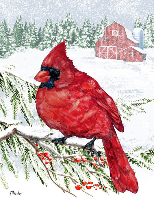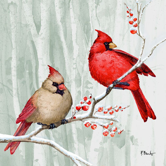 Snowy Cardinals I White Modern Wood Framed Art Print with Double Matting by Brent, Paul