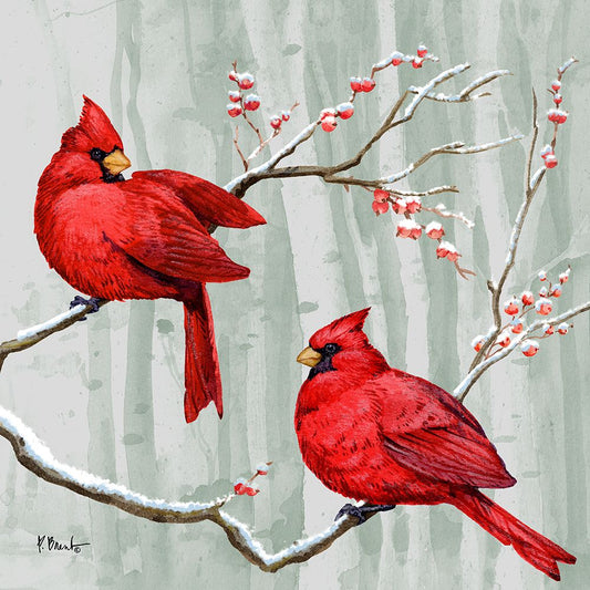 Snowy Cardinals II White Modern Wood Framed Art Print with Double Matting by Brent, Paul