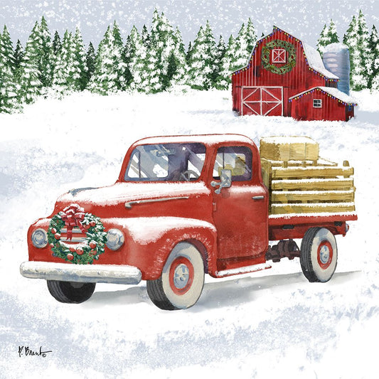 Holiday Winter Truck II White Modern Wood Framed Art Print with Double Matting by Brent, Paul