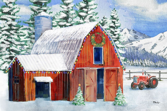 Holiday Homeland Barns I - Scenic White Modern Wood Framed Art Print with Double Matting by Brent, Paul