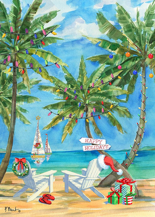 Holiday Palmas Belize - Vertical White Modern Wood Framed Art Print with Double Matting by Brent, Paul