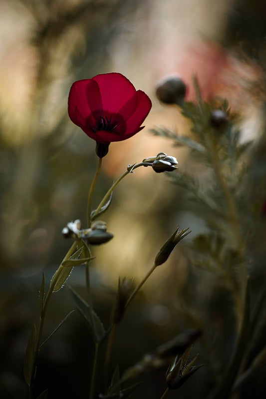 Red Blossom Black Ornate Wood Framed Art Print with Double Matting by Hardibudi