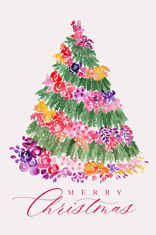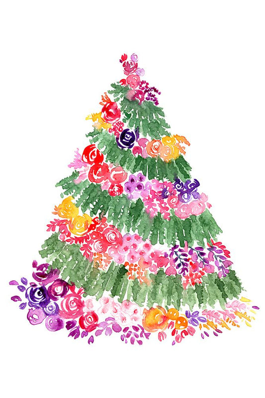 Floral watercolor Christmas tree Black Ornate Wood Framed Art Print with Double Matting by Laiz Blursbyai, Rosana
