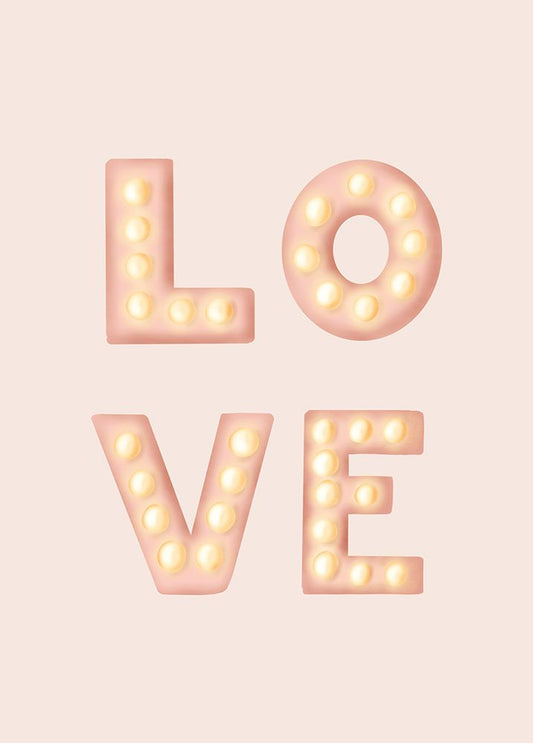 LOVE Light Letters Pink Black Ornate Wood Framed Art Print with Double Matting by Eleonora, Aminah