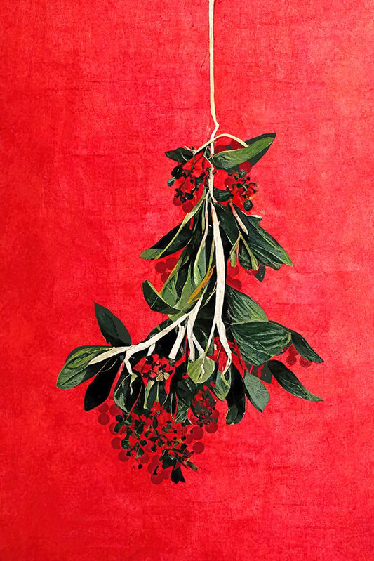 Painted Mistletoe Black Ornate Wood Framed Art Print with Double Matting by Treechild