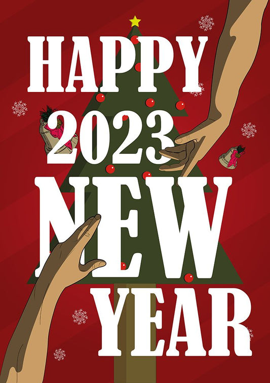Happy New Year Soulmate Black Ornate Wood Framed Art Print with Double Matting by Elmoudden, Omar