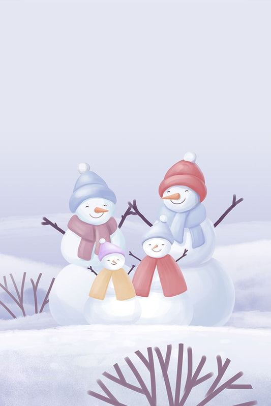 Snowman Family Animated Black Ornate Wood Framed Art Print with Double Matting by Thai, Xuan