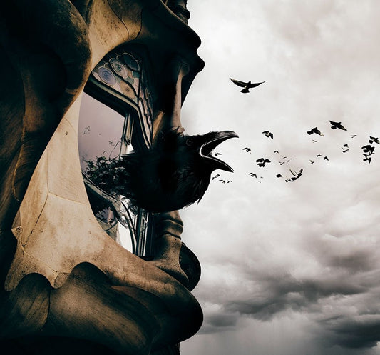 La Maison des Corbeaux Black Ornate Wood Framed Art Print with Double Matting by Hossameldin, Hany