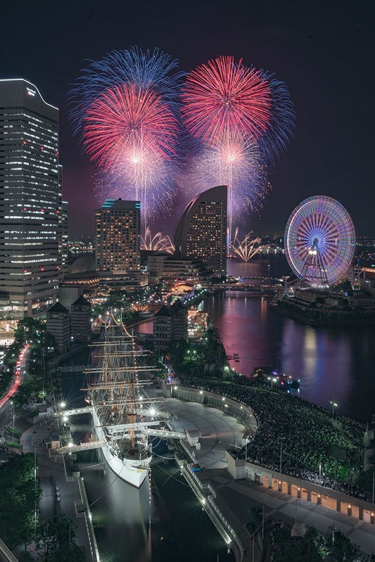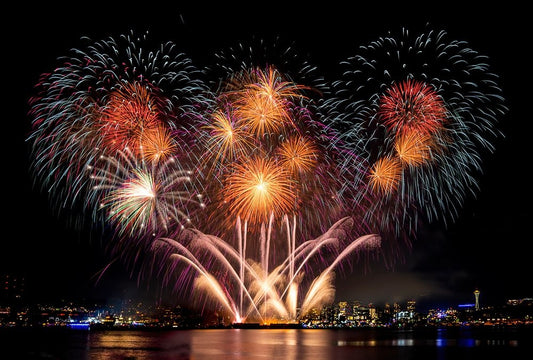 Boston fireworks Black Ornate Wood Framed Art Print with Double Matting by Wang, Ti