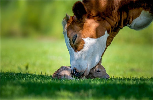 Cow Deer Love Black Ornate Wood Framed Art Print with Double Matting by Coenders, Chris