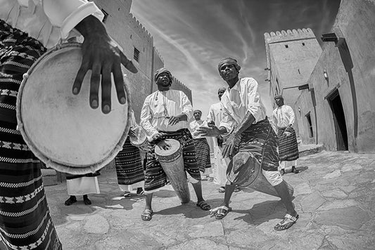Drummers Black Ornate Wood Framed Art Print with Double Matting by Nid