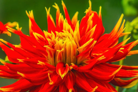 Yellow-orange dahlia blooming macro Black Ornate Wood Framed Art Print with Double Matting by Perry, William