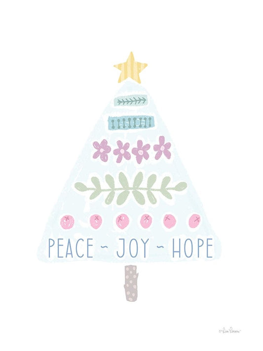 Peace, Joy, Hope Christmas Tree Black Ornate Wood Framed Art Print with Double Matting by Larson, Lisa