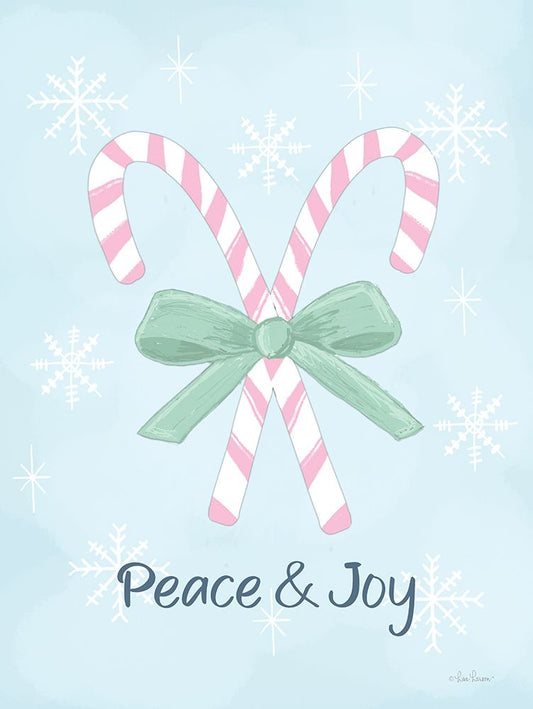 Peace And Joy Candy Canes Black Ornate Wood Framed Art Print with Double Matting by Larson, Lisa