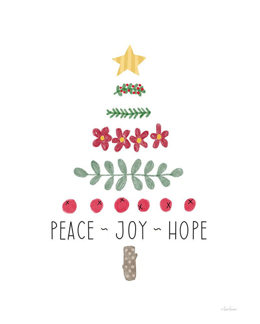 Peace, Joy, Hope Christmas Tree Black Ornate Wood Framed Art Print with Double Matting by Larson, Lisa