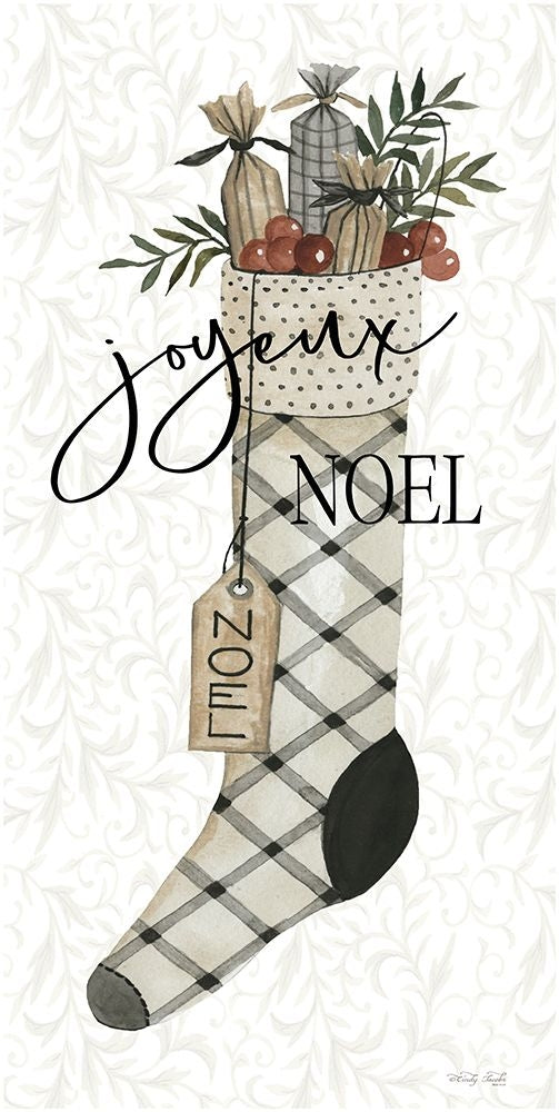 Noel Stocking Black Ornate Wood Framed Art Print with Double Matting by Jacobs, Cindy