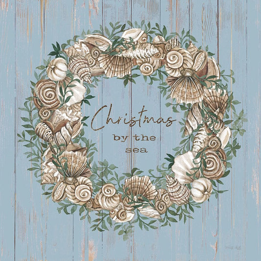 Christmas by the Sea Wreath Black Ornate Wood Framed Art Print with Double Matting by Jacobs, Cindy