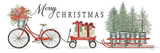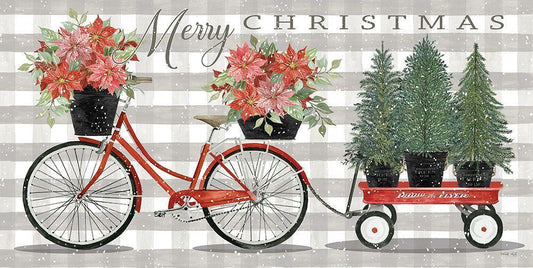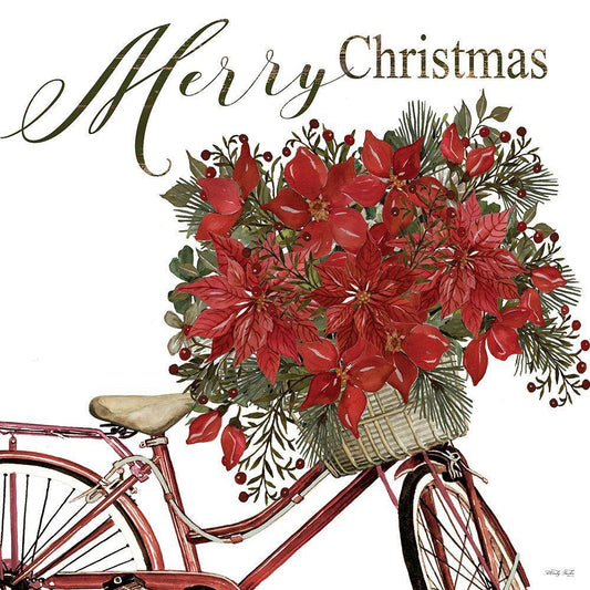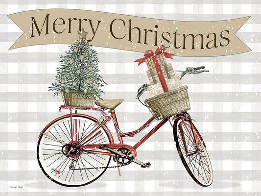 Merry Christmas Bicycle III Black Ornate Wood Framed Art Print with Double Matting by Jacobs, Cindy