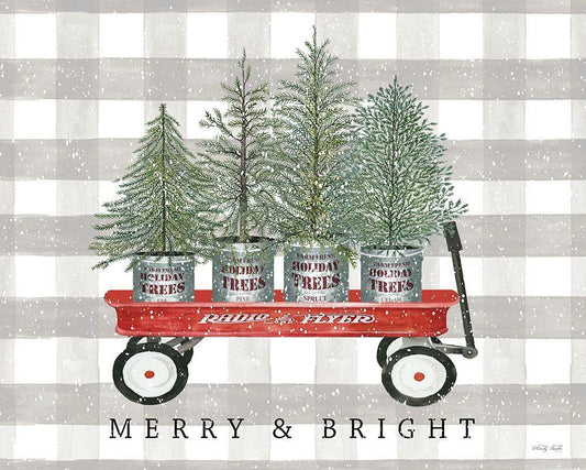 Merry And Bright Tree Wagon Black Ornate Wood Framed Art Print with Double Matting by Jacobs, Cindy