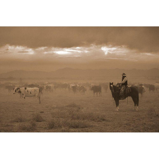 Settling the Herd Gold Ornate Wood Framed Art Print with Double Matting by Dawson, Robert