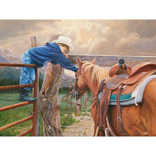 Morning Chores Gold Ornate Wood Framed Art Print with Double Matting by Dudley, June