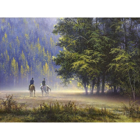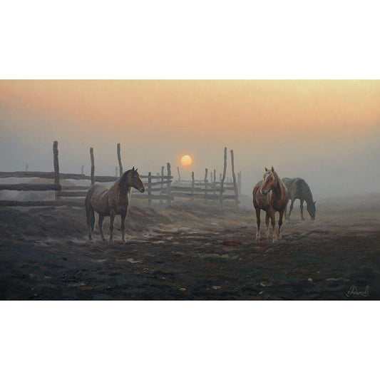 Horse early Morning by the Lake Gold Ornate Wood Framed Art Print with Double Matting by Adamov, Alexey