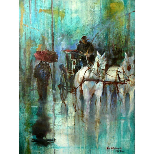 In the Rain in Vienna Gold Ornate Wood Framed Art Print with Double Matting by Zakrynycny, Viktor