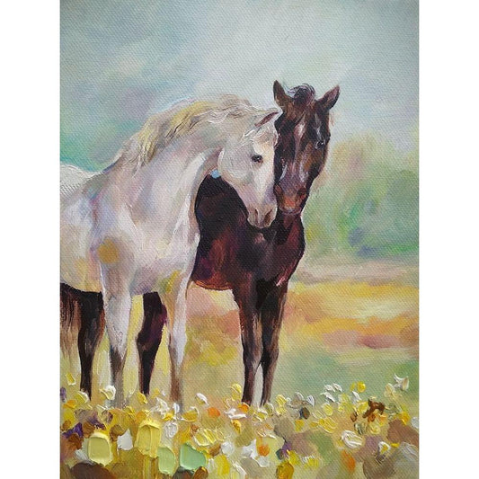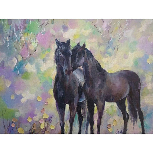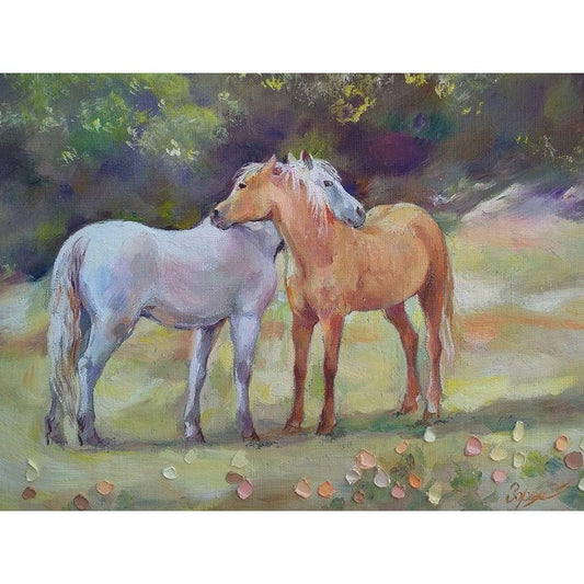 Horses in Love I Gold Ornate Wood Framed Art Print with Double Matting by Zareckaye, Tatiana