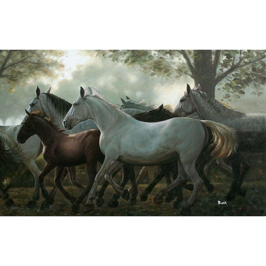Running Horses Gold Ornate Wood Framed Art Print with Double Matting by Jackson