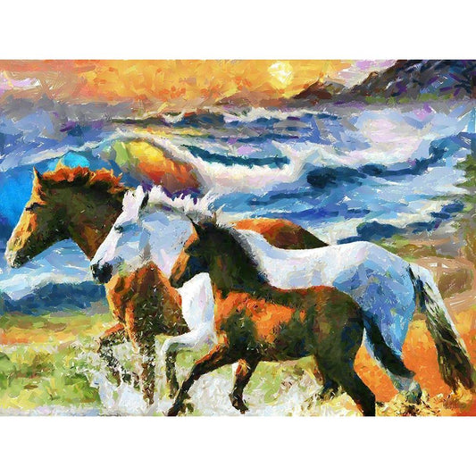 Three Horses by the Sea Gold Ornate Wood Framed Art Print with Double Matting by Medeiros, Celito