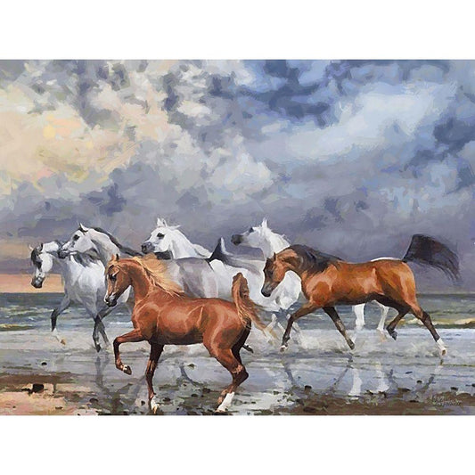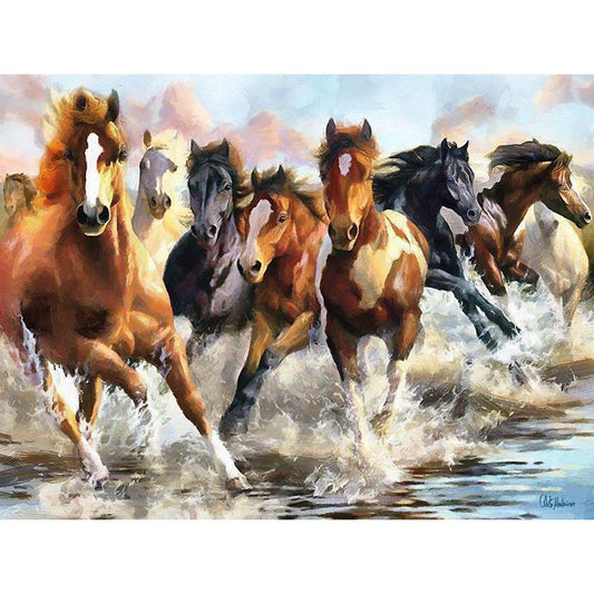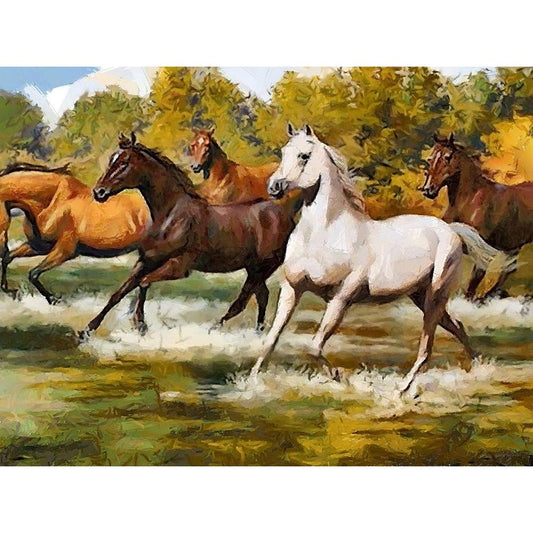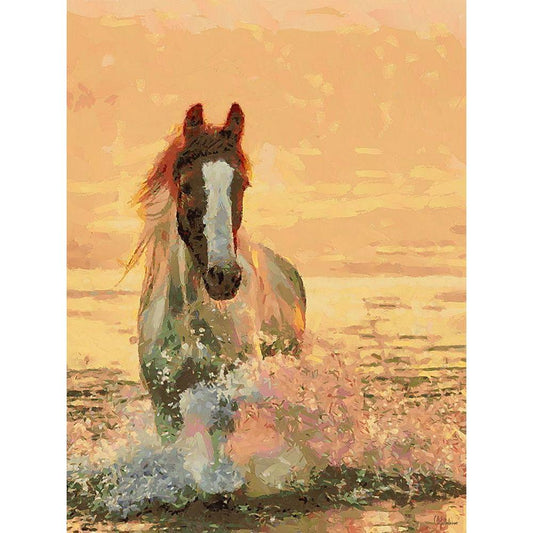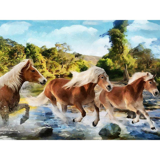 Running Horses in Water Gold Ornate Wood Framed Art Print with Double Matting by Medeiros, Celito