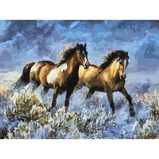 Running Horses in Snow Gold Ornate Wood Framed Art Print with Double Matting by Medeiros, Celito