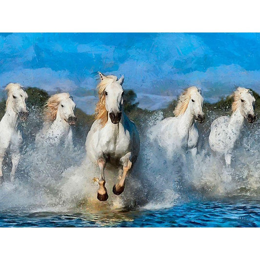 White Running Horses Gold Ornate Wood Framed Art Print with Double Matting by Medeiros, Celito